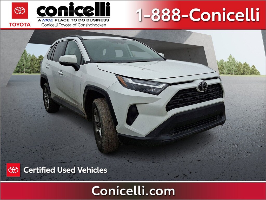 CarFax One Owner! -Priced below the market average!- This Toyota RAV4 is CERTIFIED! Back-up Camera, Bluetooth, This 2023 Toyota RAV4 XLE, has a great Ice Cap exterior, and a clean Black interior! Multi-Zone Air Conditioning, Auto Climate Control, Satellite Radio, Steering Wheel Controls, HD Radio Aux Audio Input, Automatic Headlights Keyless Start AM/FM Radio Rear Spoiler, This Toyota RAV4 gets great fuel economy with over 34.0 MPG on the highway! Stability Control, ABS Brakes Satellite Radio Front Wheel Drive Call to confirm availability and schedule a no-obligation test drive! We are located at 550 Ridge Pike, Conshohocken, PA 19428.
