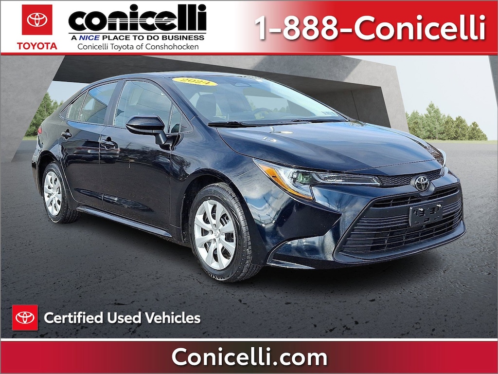 This Toyota Corolla is Certified Preowned! CARFAX 1-Owner! Value priced below the market average! This 2024 Toyota Corolla LE, has a great Midnight Black Metallic exterior, and a clean Black interior! This model has many valuable options -Backup Camera -Bluetooth -Satellite Radio -Aux. Audio Input -Auto Climate Control -High Intensity Headlights -Automatic Headlights -Front Wheel Drive -Power Locks -Keyless Entry -Power Windows -Steering Wheel Controls -Cruise Control ContinuouslyVariable Transmission -Rear Bench Seats -Tire Pressure Monitors On top of that, it has many safety features -Brake Assist -Traction Control -Stability Control Save money at the pump, knowing this Toyota Corolla gets 41.0/32.0 MPG! Call to confirm availability and schedule a no-obligation test drive! We are located at 550 Ridge Pike, Conshohocken, PA 19428.