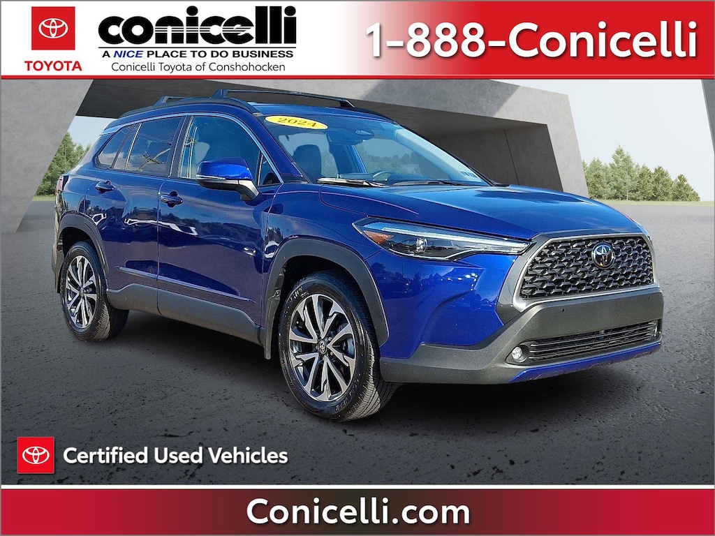AWD, CarFax One Owner! -Priced below the market average!- This Toyota Corolla Cross is CERTIFIED! Low miles for a 2024! Back-up Camera, Bluetooth, This 2024 Toyota Corolla Cross XLE, has a great Blue Crush Metallic exterior, and a clean Macadamia interior! Heated Seats, Multi-Zone Air Conditioning, Auto Climate Control, Leather Steering Wheel Satellite Radio, Steering Wheel Controls, HD Radio Aux Audio Input, Automatic Headlights Keyless Start Parking Sensors AM/FM Radio Rear Spoiler, This Toyota Corolla Cross gets great fuel economy with over 31.0 MPG on the highway! Park Distance Control Stability Control, ABS Brakes Satellite Radio Call to confirm availability and schedule a no-obligation test drive! We are located at 550 Ridge Pike, Conshohocken, PA 19428.