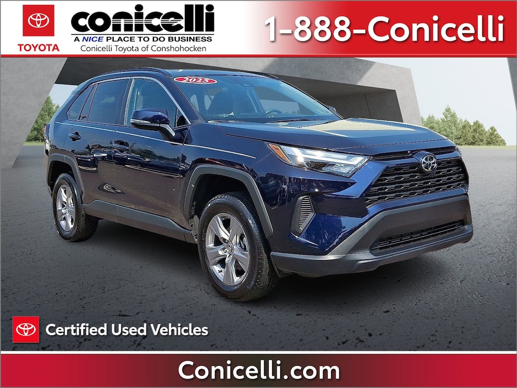 AWD, CarFax One Owner! -Priced below the market average!- This Toyota RAV4 is CERTIFIED! Low miles for a 2025! Back-up Camera, Bluetooth, This 2025 Toyota RAV4 XLE, has a great Blueprint exterior, and a clean Black interior! Multi-Zone Air Conditioning, Auto Climate Control, Satellite Radio, Steering Wheel Controls, HD Radio Aux Audio Input, Automatic Headlights Keyless Start AM/FM Radio Rear Spoiler, This Toyota RAV4 gets great fuel economy with over 33.0 MPG on the highway! Stability Control, ABS Brakes Satellite Radio Call to confirm availability and schedule a no-obligation test drive! We are located at 550 Ridge Pike, Conshohocken, PA 19428.