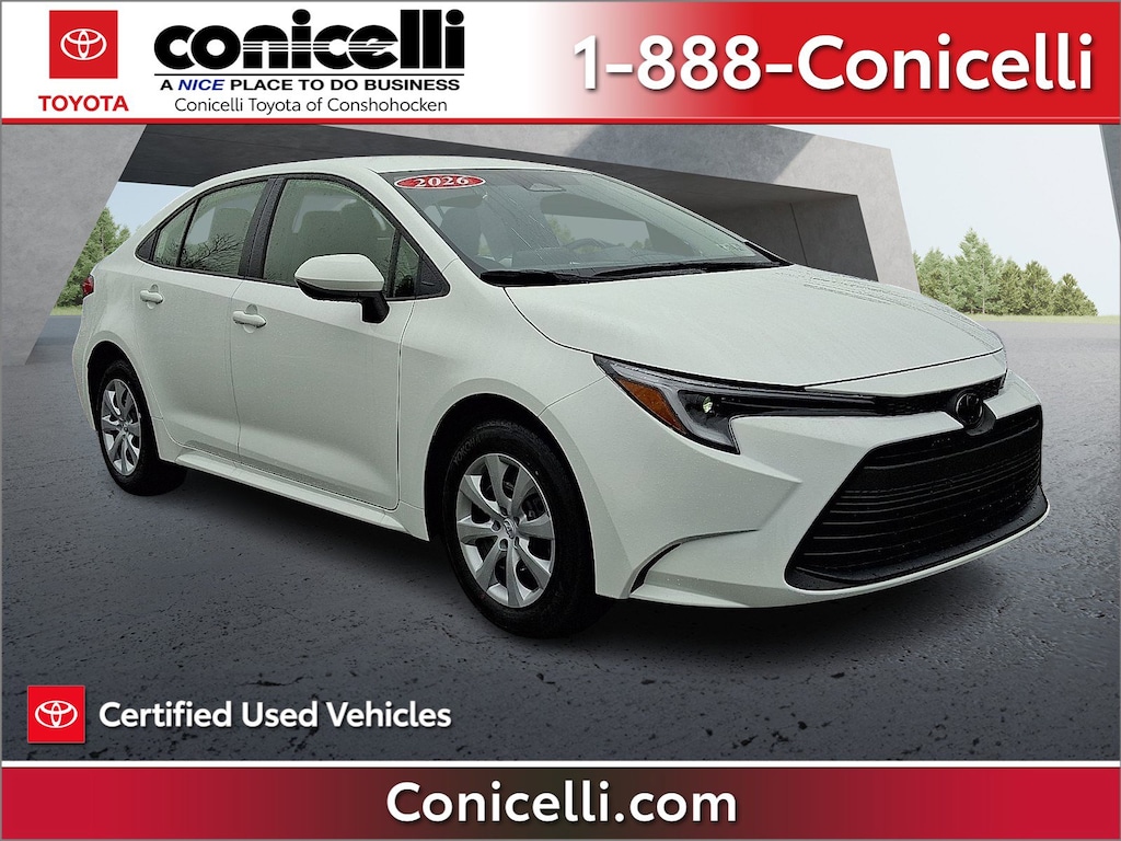 New Arrival! -Priced below the market average!- This Toyota Corolla is CERTIFIED! Low miles for a 2026! Back-up Camera, Bluetooth, This 2026 Toyota Corolla Hybrid LE, has a great Ice Cap exterior, and a clean Gray interior! Auto Climate Control, Satellite Radio, Steering Wheel Controls, HD Radio Aux Audio Input, Automatic Headlights AM/FM Radio This Toyota Corolla gets great fuel economy with over 43.0 MPG on the highway! Stability Control, ABS Brakes Satellite Radio Front Wheel Drive Call to confirm availability and schedule a no-obligation test drive! We are located at 550 Ridge Pike, Conshohocken, PA 19428.