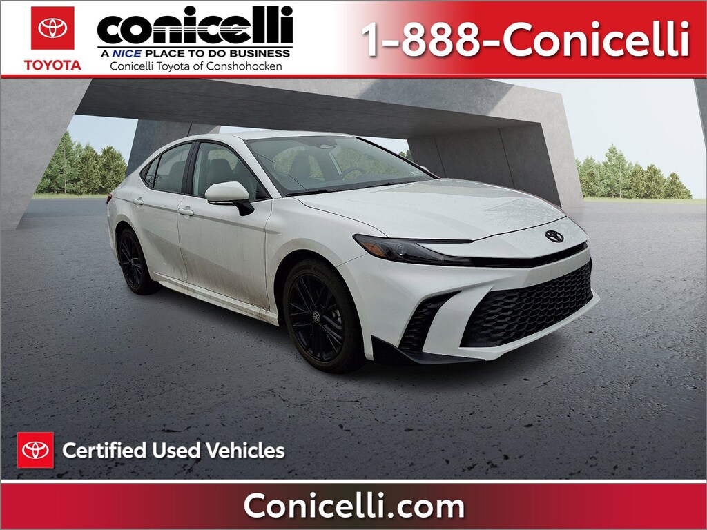 New Arrival! This Toyota Camry is Certified Preowned! Value priced below the market average! This 2025 Toyota Camry SE, has a great White exterior, and a clean Gray interior! -Only 1,729 miles which is low for a 2025 ! This model has many valuable options -Synthetic Leather Seats -Backup Camera -Bluetooth -Satellite Radio -Aux. Audio Input -Heated Mirrors -All Wheel Drive -Auto Climate Control -High Intensity Headlights -Automatic Headlights -Multi-Zone Air Conditioning -Security System -Power Locks -Keyless Entry -Power Windows -Steering Wheel Controls -Cruise Control -Leather Steering Wheel ContinuouslyVariable Transmission -Rear Bench Seats -Tire Pressure Monitors On top of that, it has many safety features -Brake Assist -Traction Control -Stability Control Save money at the pump, knowing this Toyota Camry gets 46.0/46.0 MPG! Call to confirm availability and schedule a no-obligation test drive! We are located at 550 Ridge Pike, Conshohocken, PA 19428.